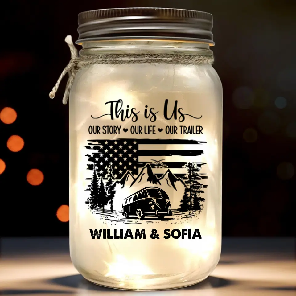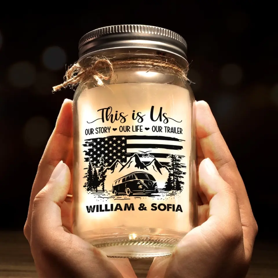 Camping Is Where The Adventure Begins – Camping Personalized Custom Mason Jar Light – Gift For Couple, Husband Wife, Camping Lovers