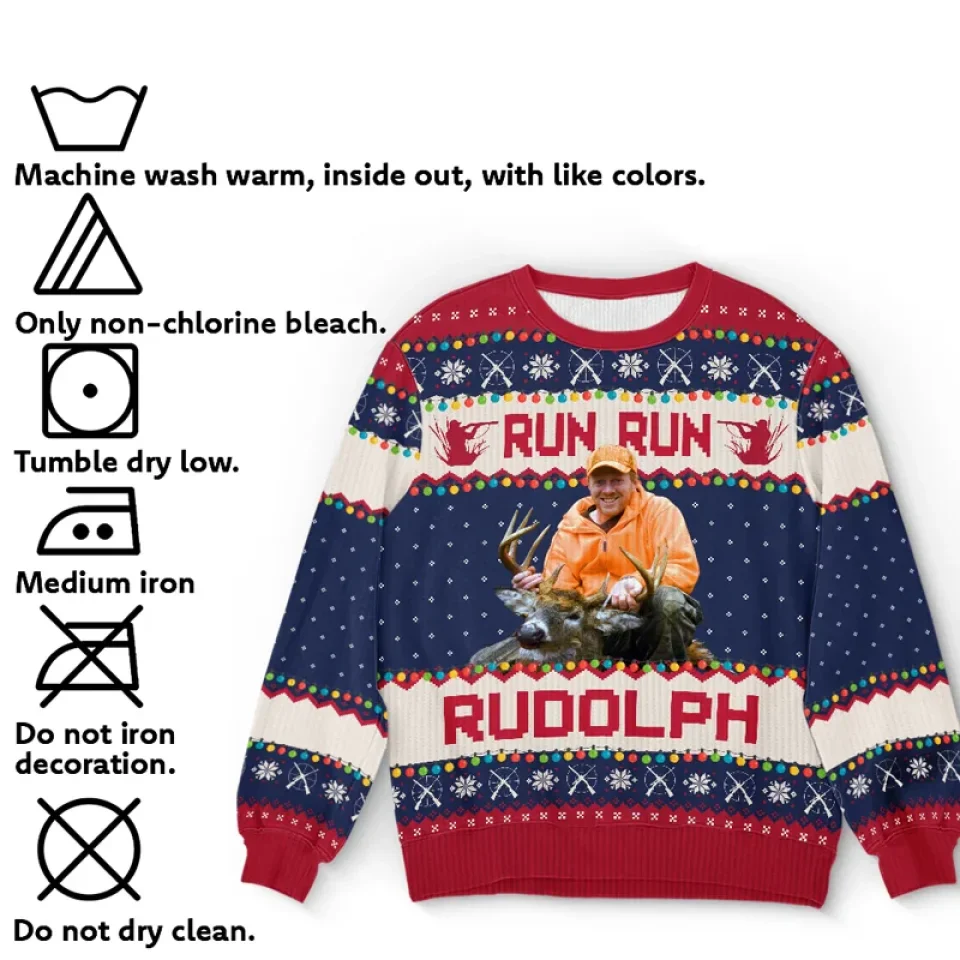 Custom Photo Merry Huntmas – Personalized Custom Ugly Sweatshirt – Unisex Wool Jumper – Hunting Christmas Gift For Dad, Grandpa, Husband
