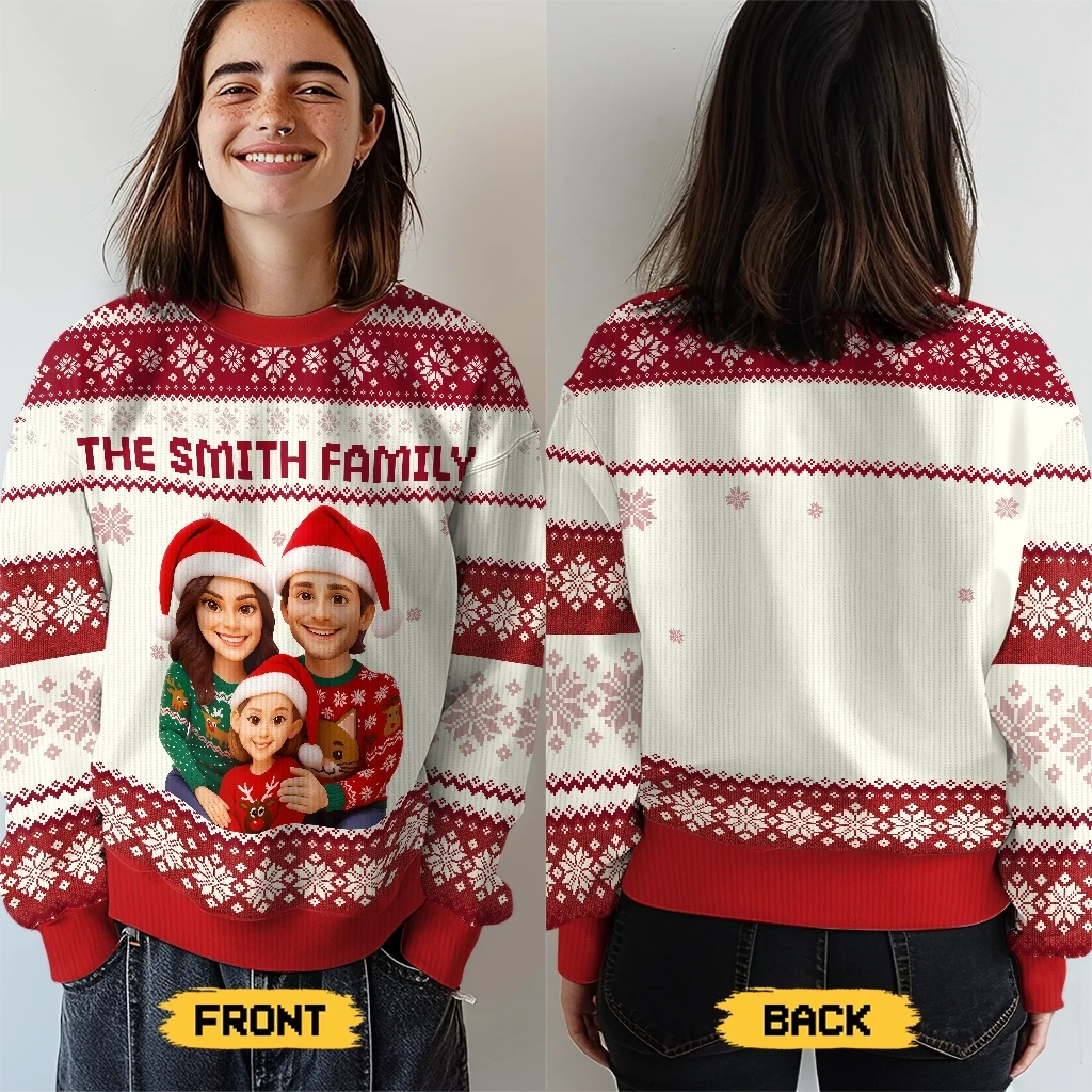 Custom Photo Unisex Ugly Sweatshirt – Personalized Christmas Birthday Gifts For Mom, Dad, Brother, Sister, Kids – All Wrapped Up In Love