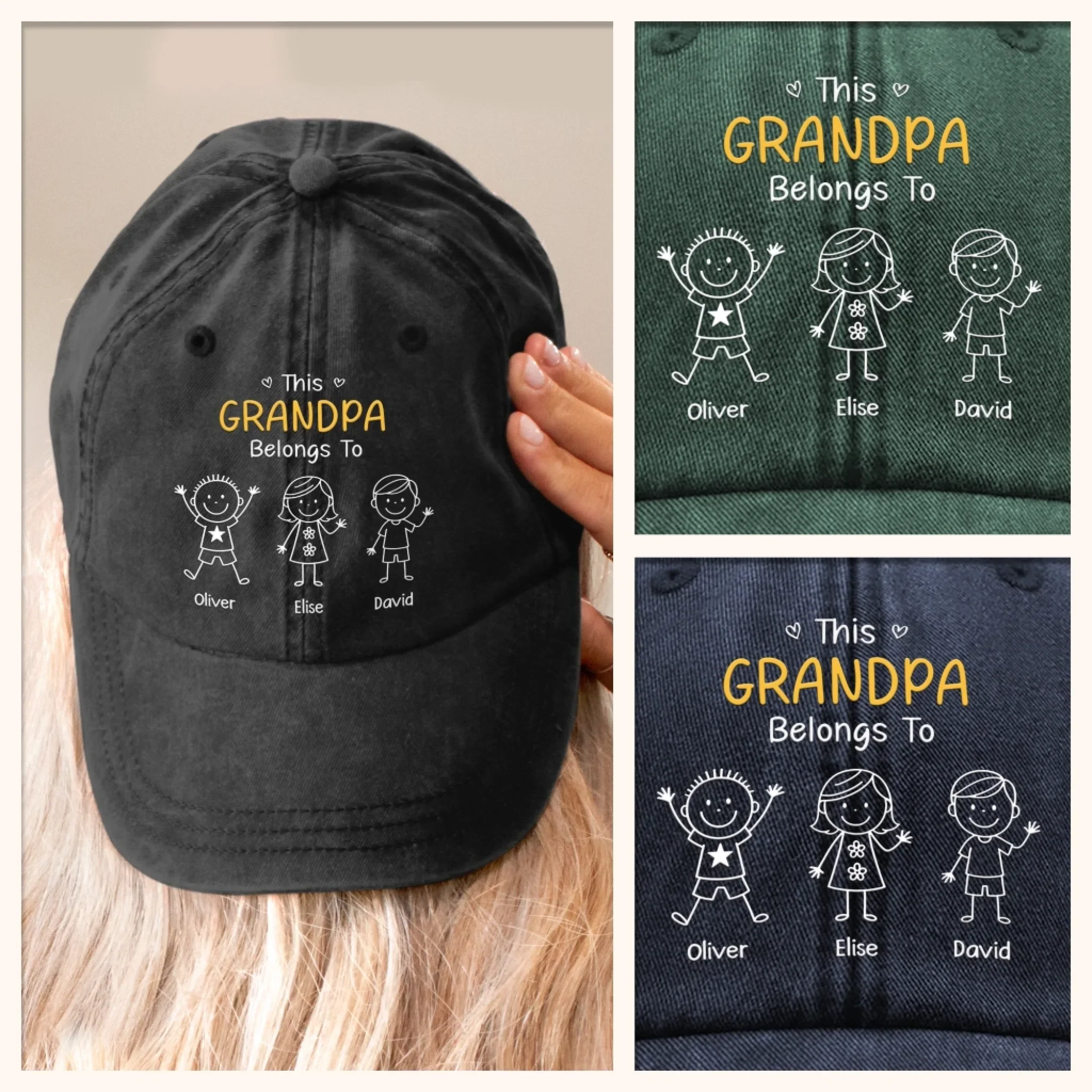 Custom Vintage Washed Denim Baseball Cap – Personalized Birthday Gifts For Dad, Grandpa – My Crew Makes Me Smile